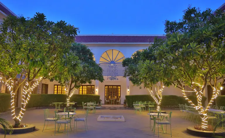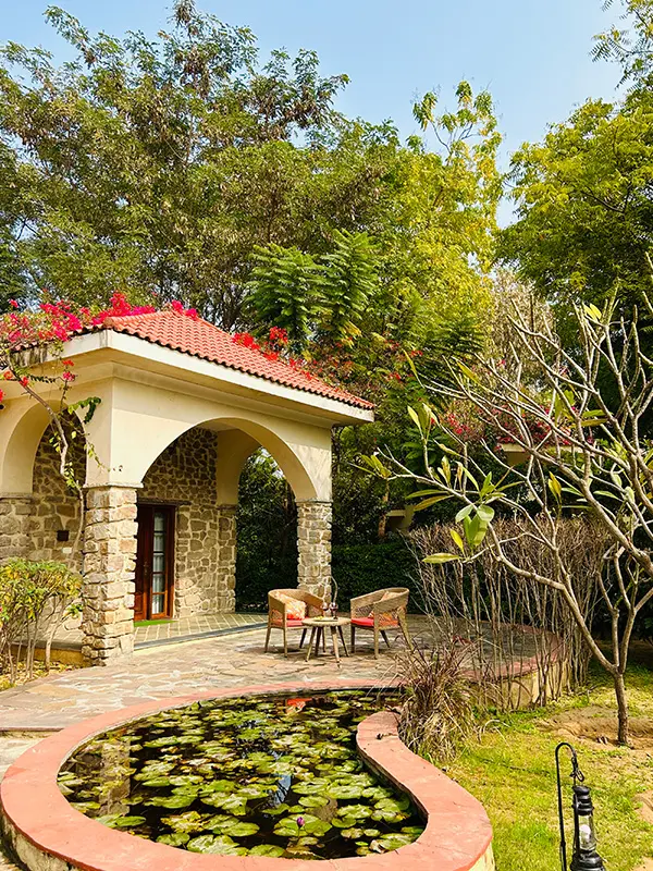 Tucked in the heart of Ranthambhore—India’s iconic tiger reserve—Nature Kalp’s Kipling Lodge is a serene escape into the wild. Surrounded by lush greenery, the lodge blends rustic charm with refined luxury. Guests can relax by nature-inspired pools, enjoy handcrafted drinks in the library bar, dine al fresco in the courtyard café, or stroll through tranquil, manicured lawns.