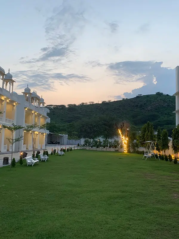 Spread across 22 acres of lush greenery, Nature Kalp Banquets, Pushkar is one of the largest properties in Pushkar, featuring 150 thoughtfully designed rooms, wooden cottages, and farm villas that blend comfort with rustic charm. Surrounded by the Aravalli hills, open skies, and verdant landscapes, the resort offers a peaceful retreat from city life, perfect for relaxation and reconnecting with nature. Boasting the largest banquet facilities in Pushkar, Nature Kalp Banquets is ideal for weddings, grand celebrations, corporate events, and retreats, combining farm-style serenity with modern luxury. Experience a unique escape where nature, elegance, and celebration meet only at Nature Kalp Banquets, Pushkar.